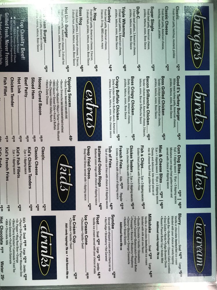 Boss Drive In Menu (2025 Update)